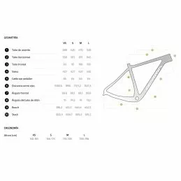 | Cuadro | Bravo 5 EVO, XCO Racing Geometry BGC 29″, Full carbon HMR2X, Triple monocoque, Resin Matrix Nanotech CNT, Active Stay, Asymmetric, Full internal cable system ICS2, Freno Post Mount, Peso 1150g |